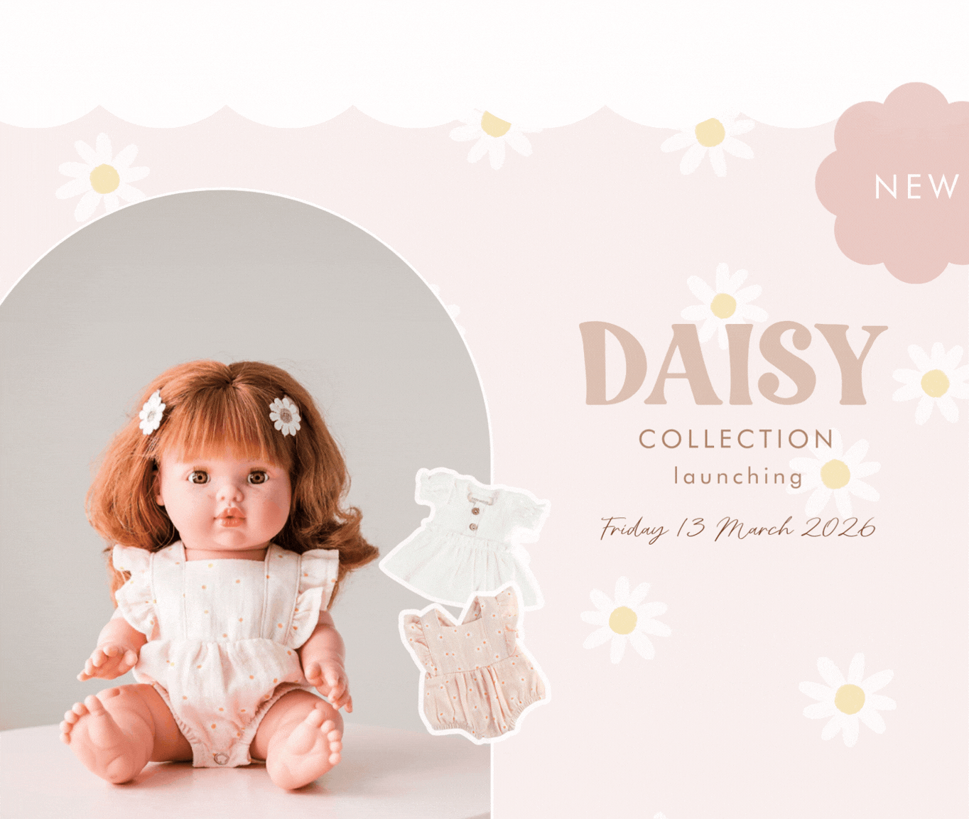 Soft, Playful and perfect for little doll lovers. Our new Daisy collection includes sweet doll outfits and matching accessories like delicate hair clips and bows.
