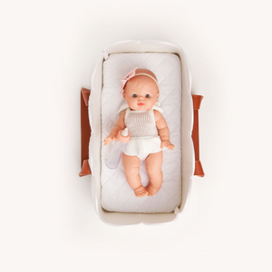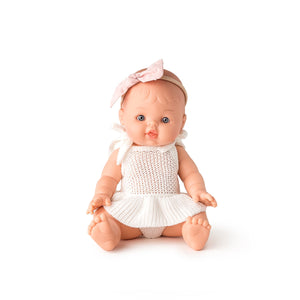 Bella is a beautiful Anatomically correct doll. This beautiful girl without hair has blue eyes with eyelashes and has a light vanilla scent. With moving arms and legs this beautiful doll will be a very best friend to your little ones.