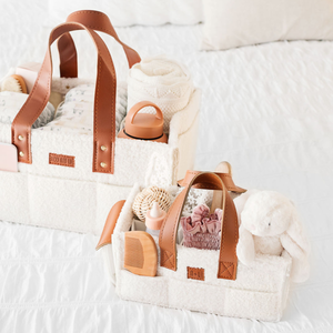 Our gorgeous Mini Doll Nappy Caddy is the sweetest accessory to keep your little one’s doll essentials neatly organised. Perfectly sized for play, it pairs beautifully with our full-sized Nappy Caddies—so your little one can match with mum during nappy changes. Doll care has never been this much fun!