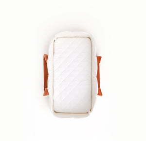 Each bassinet features soft vegan leather handles and a cosy quilted mattress for extra comfort.